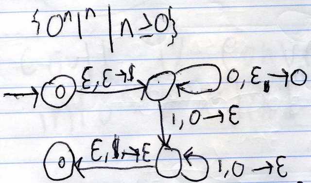 this simple example with expresses the language 0^n1^n (a string of zeros